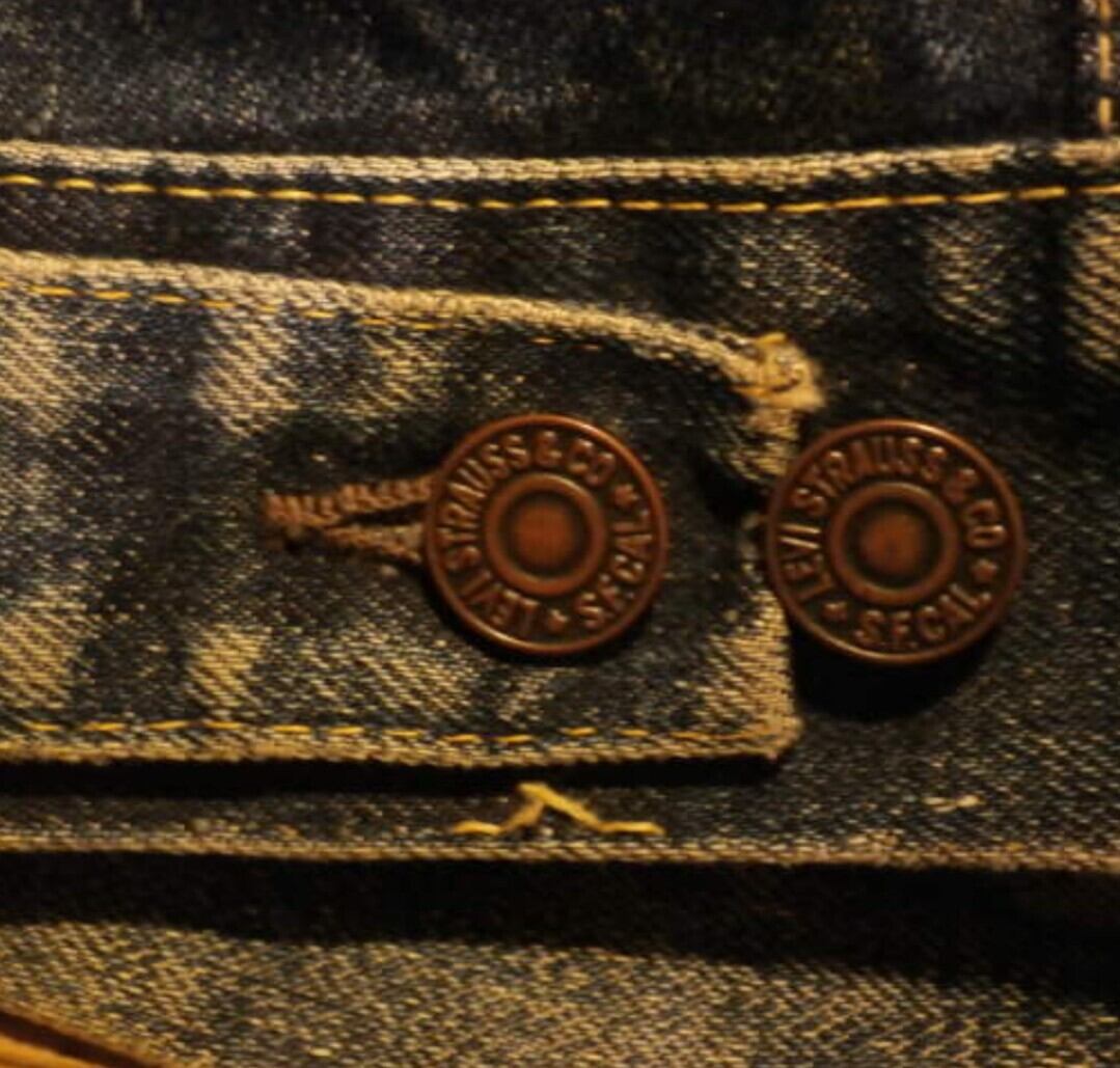 こちらは残念ながら紙パッチが欠落しており、品番やサイズ等の記載確認が出来ませんが、袖口のステッチが切り返されている点、前ポケットのフラップ裏にライトデニムを使用している点、ボタン裏の刻印が17(二桁数字は1950年~1960年前半)