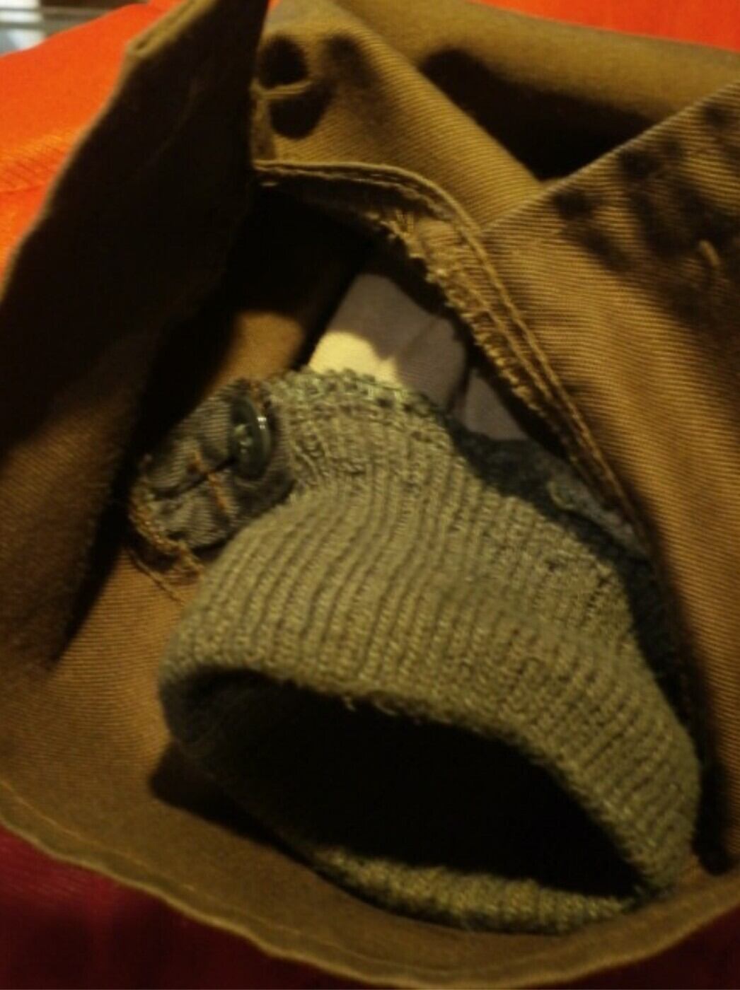 インナーは背中だけでなく袖口まで有り、袖口の固定はボタンで留めるようになっています。