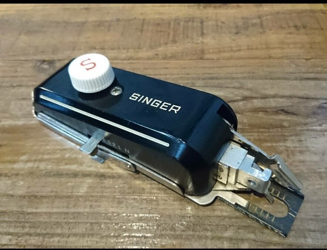 ミシン周りのアイテムですが、黒い本体や底面、メカニカルな接続部、グリーンの専用ケースなどがインダストリアル系を感じます。