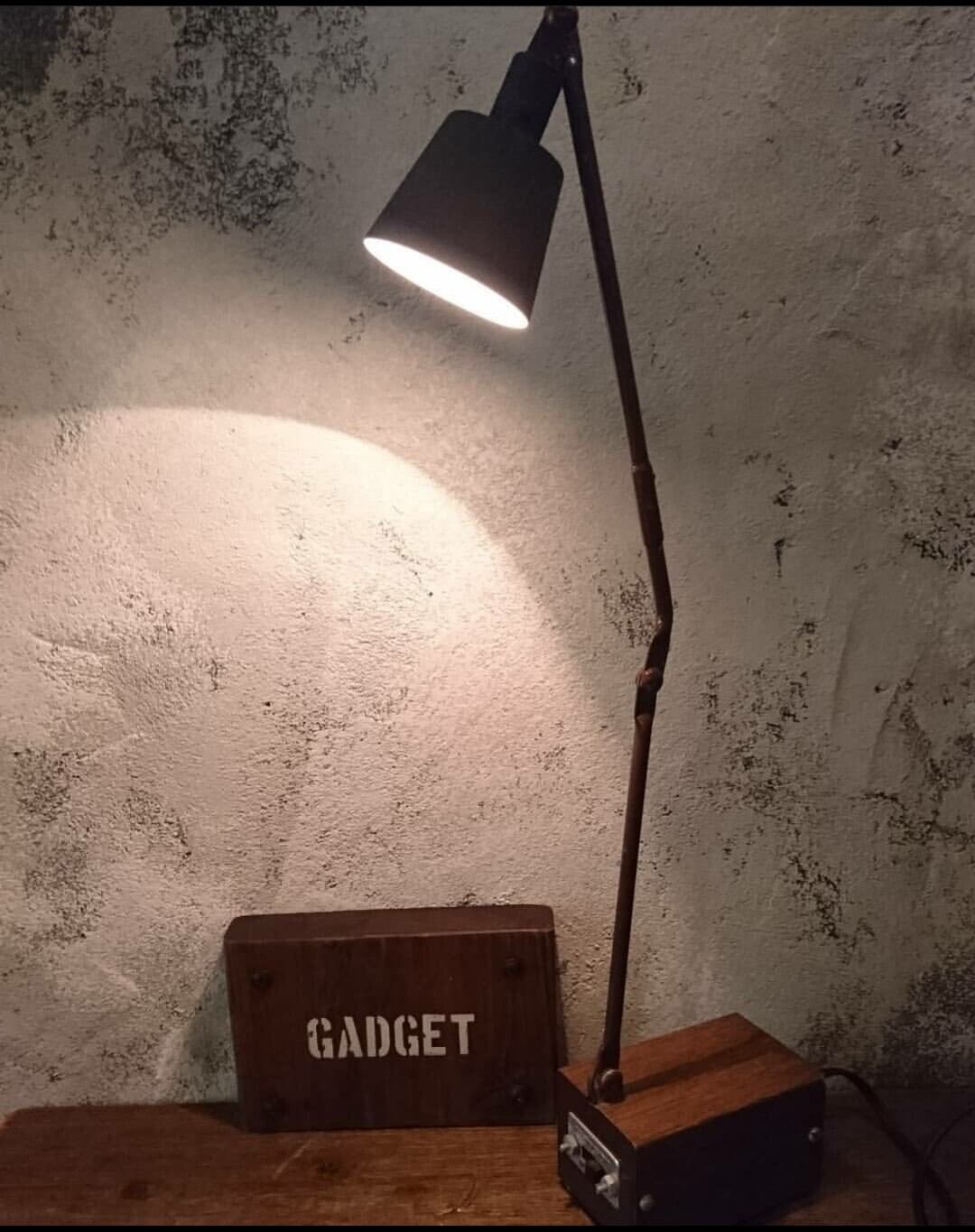 小型のランプながら、スイッチ周りやシェード.アーム部がインダストリアル系を思われるデザインです。